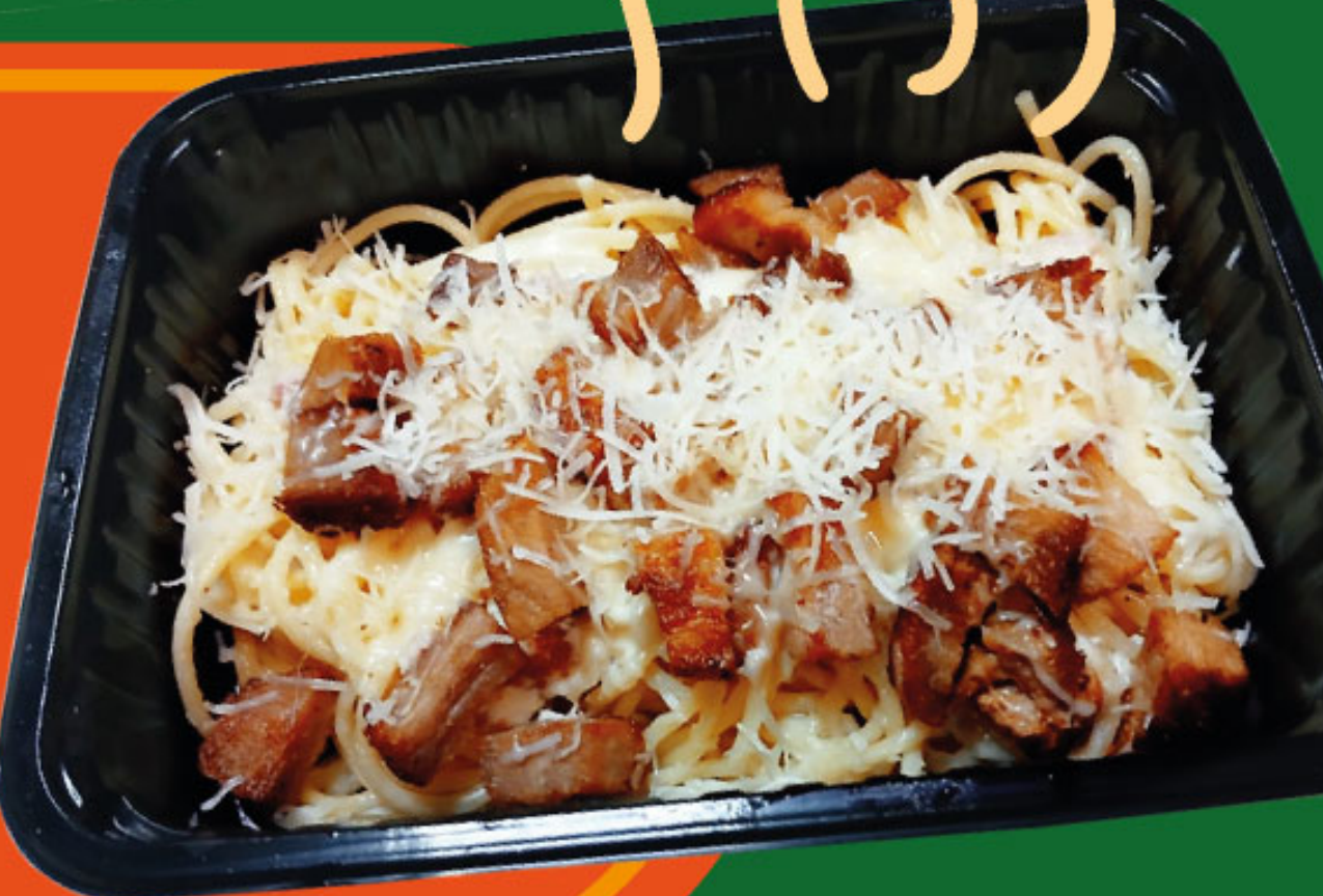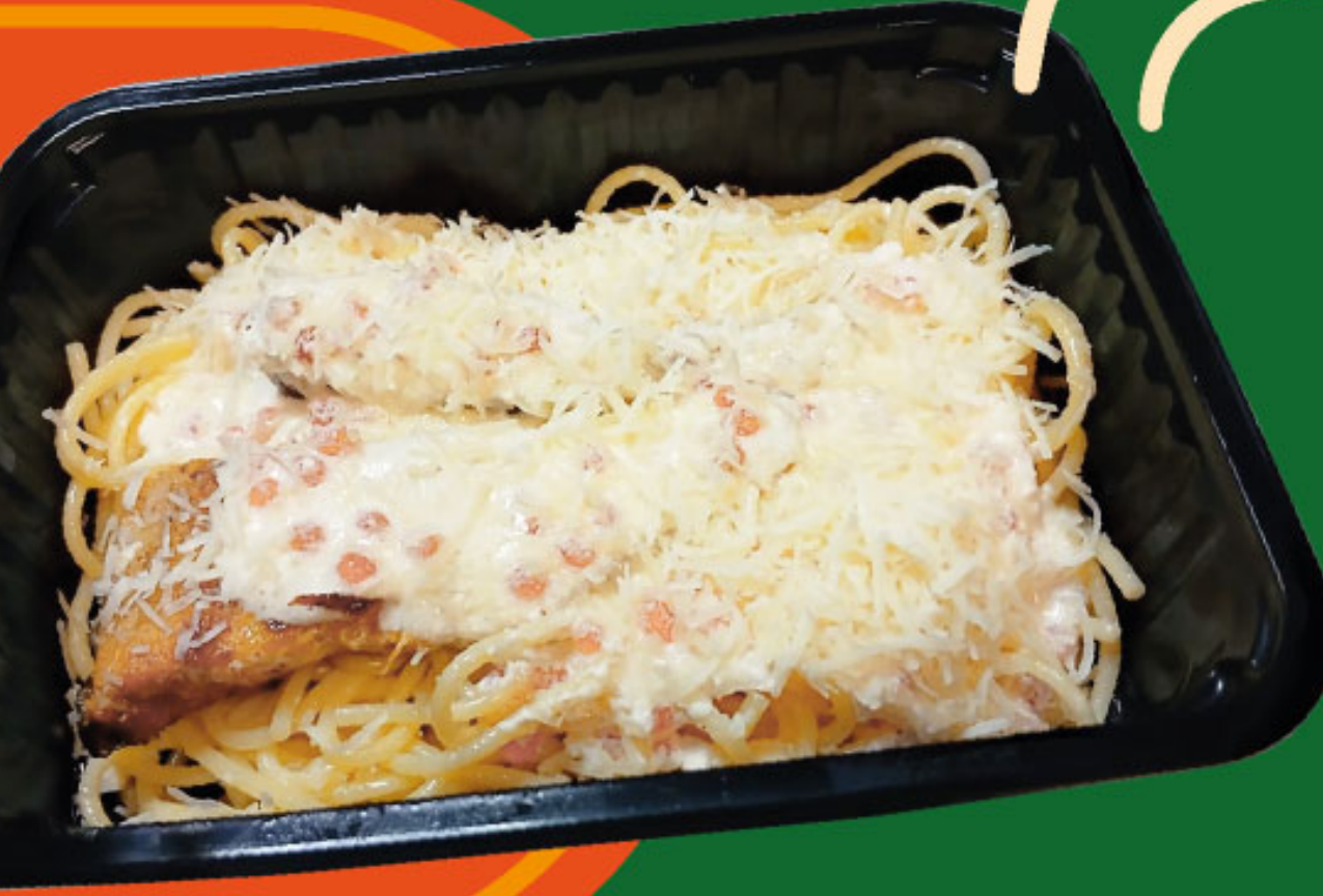 Лапша Премиум, бекон, свинина гриль, сливки, яичный желток, сыр Пармезан