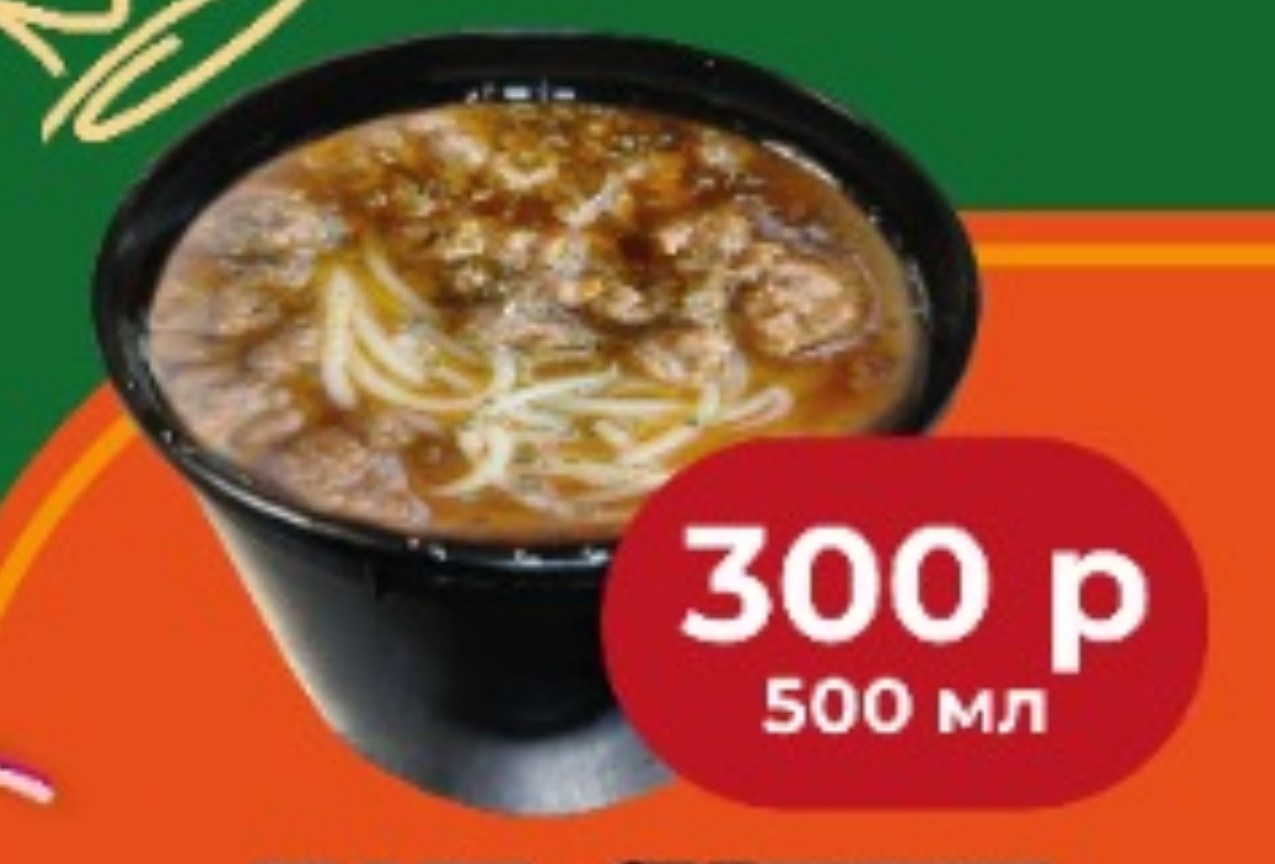 Бульон на костях, домашняя лапша, курочка гриль, майонез, зелень. Отдельно подаётся к супчику свинной шпик в соусничке и тост.