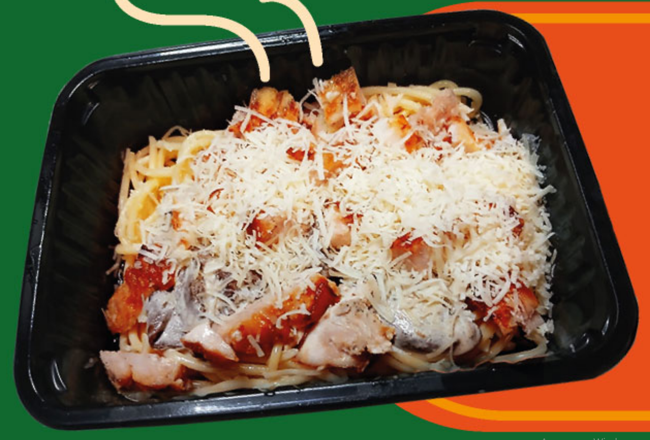 Лапша Премиум, курица гриль, шампиньоны, сливки, сыр Пармезан